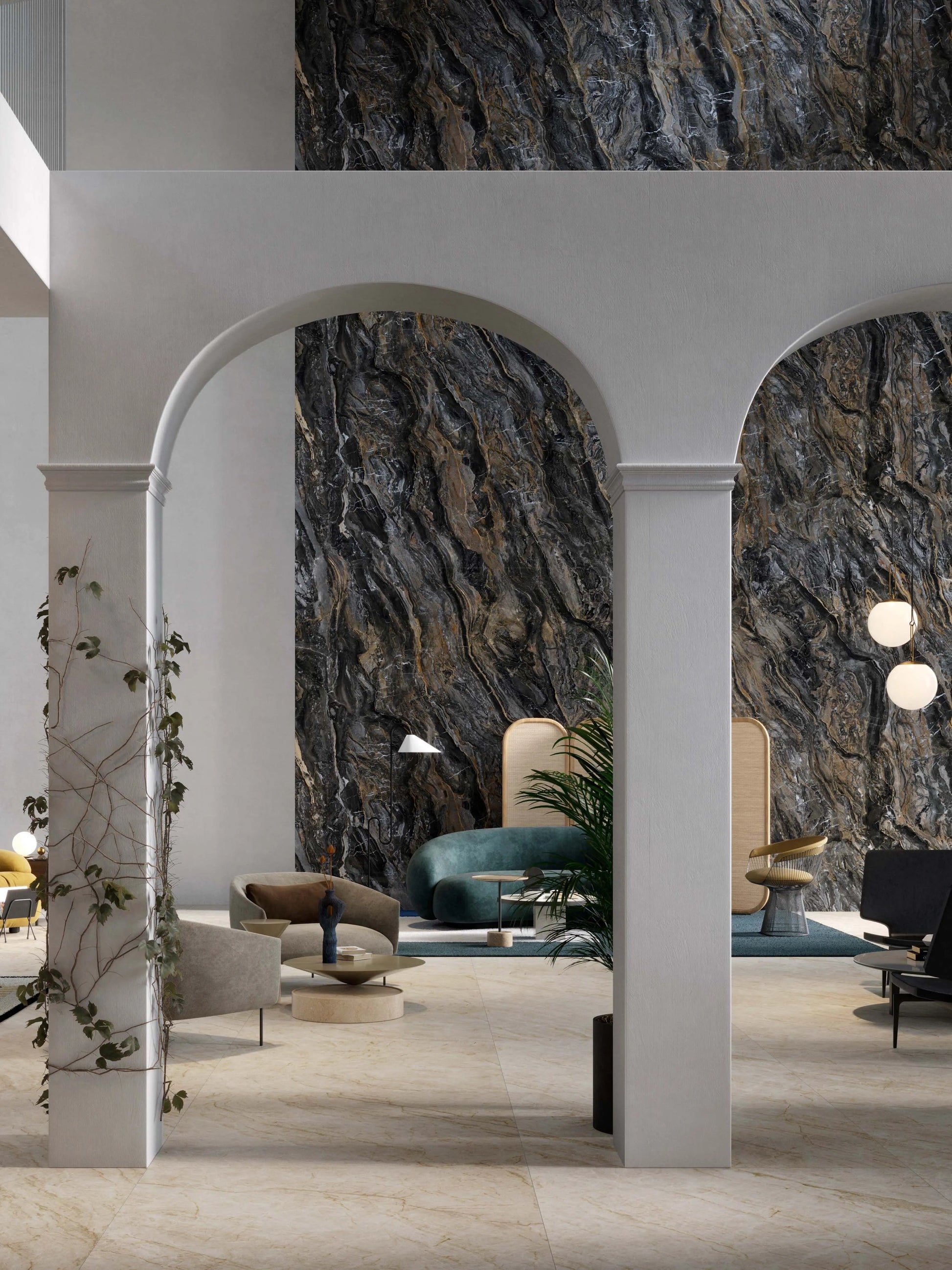 An amazing veined structure that convey us to the most whimsical and extravagant side of nature. Its marked dark hues, combined with earthy hues, provide a versatile chromatic palette.